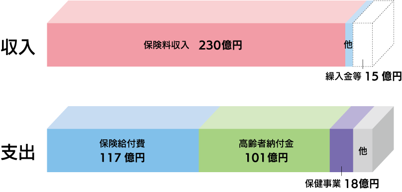 保険料収入が前年度比11億円増加(5%増)しました。一方、保険給付費は同7億円増加(6%増)、高齢者納付金は同9億円増加(10%増)となり、収支は約7億円のマイナスとなりました。